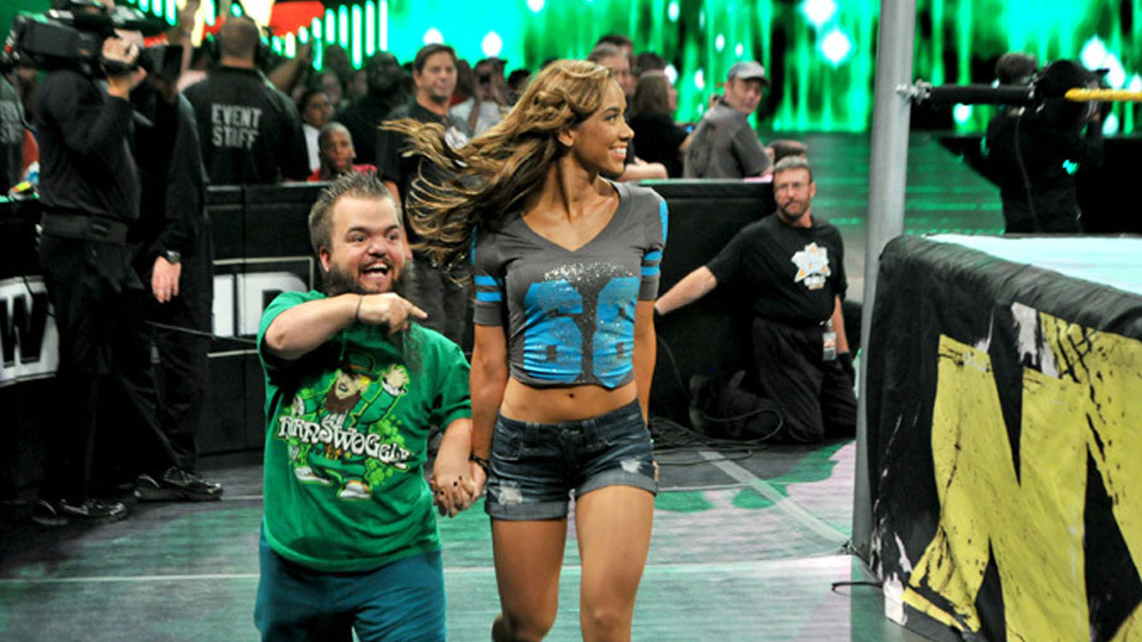 Esta não era bem uma delas. Mas lá teremos que justificar porque é que Hornswoggle estava ali, visto que arranjavam sempre alguma coisa para fazer com ele no Raw ou no Smackdown. Acontece que, por aquela altura, já estavam a rapar o tacho dos pros também. Portanto vejam lá, Hornswoggle era o pro de Titus O’Neil. E ficou por lá para um angle em que andava a receber presentes de uma admiradora secreta. O moço pensava inicialmente que era a Maryse mas levou uma tampa que nem foi bonito, mas a admiradora secreta revelou-se… Uma rookie promissora de duas temporadas antes, com quem não sabiam o que fazer: AJ.