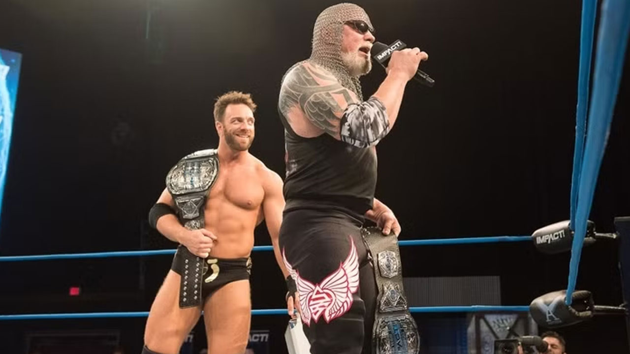Então serve para tornar a coisa mais surreal ainda para quem já não se lembre ou não acompanhasse o Impact Wrestling nessa sua fase complicada – foi em 2018, não foi assim há tanto tempo – ao trazer a coisa para o presente e lembrar que o LA Knight e o Scott Steiner já foram parceiros de equipa. O LA Knight e o Scott Steiner já foram Impact World Tag Team Champions. Num bom bate-boca desbocado, que esteja ali à mão para o LA Knight, se se vir de mãos cheias e em apuros com o Bron Breakker, mencionar que conhece bem o tio dele e até sabe umas coisas e se calhar até já ouvia falar do putozito Bron antes de se tornar o canzarrão que é hoje.