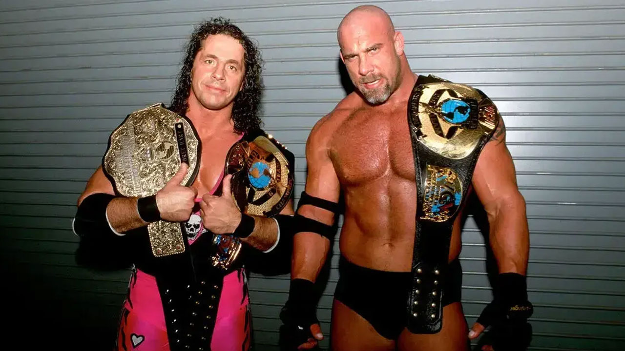 Não foram uma tag team propriamente combinada, ou uma dupla que dominasse por algum tempo, ou qualquer coisa desse género. Claro que não. Está aqui por ser hilariante o facto de realmente estar registado que Bret Hart e Goldberg, dois tipos que tanto se adoram hoje em dia, já terem sido Tag Team Champions na WCW. Por pouco tempo que fosse. Está lá registado, tinha que estar aqui. Como é que se juntaram? Com aquele velho truque do booking, podemos chamar-lhe cliché se quisermos muito, de juntar parceiros improváveis quando estão a competir. Já o fizeram com rivais bem mais azedos do que estes dois eram – ambos babyfaces, tinham a rivalidade de respeito.