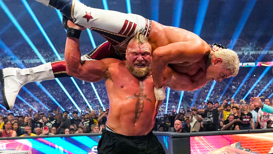 3. Brock Lesnar ataca Cody Rhodes e ajuda Seth Rollins