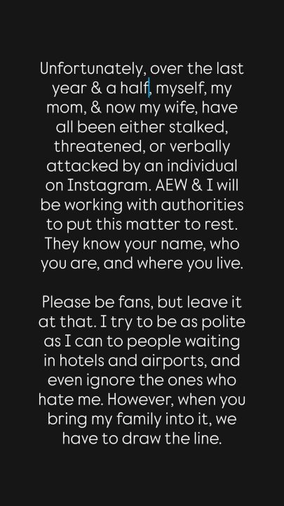 Recentemente, CM Punk e Rhea Ripley também já pediram publicamente mais respeito e privacidade fora dos eventos.